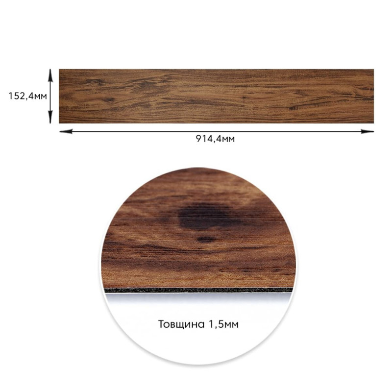 Самоклеюча вінілова плитка 152.4х914.4х1.5мм Темне дерево, ціна за 1 шт. (СВП-004) Матова SW-00000222