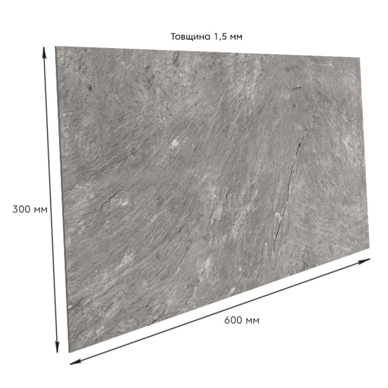 Площа покриття: 60 см х 30 см х 1,5 мм – 0,18 м2, кількість на 1 м2 – 6 одиниць