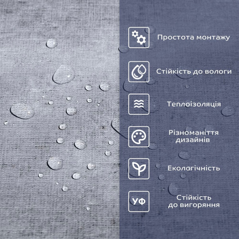 1. Легка установка: самоклеючий шар робить процес укладання швидким і простим, не вимагаючи додаткового клею, додаткових матеріалів чи спеціалістів. Матеріал укладається стик в стик, його можна різати ножицями чи монтажним ножем, між смугами не розходиться, не набухає і не деформується. Відсоток обрізу становить 1%, що є найкращим показником для настінних покриттів;