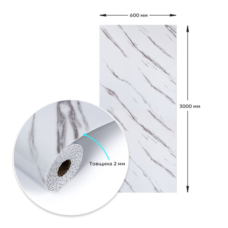 Самоклеюча вінілова плитка в рулоні 600х3000х2мм Білий мармур з прожилками Глянсова SW-00001285