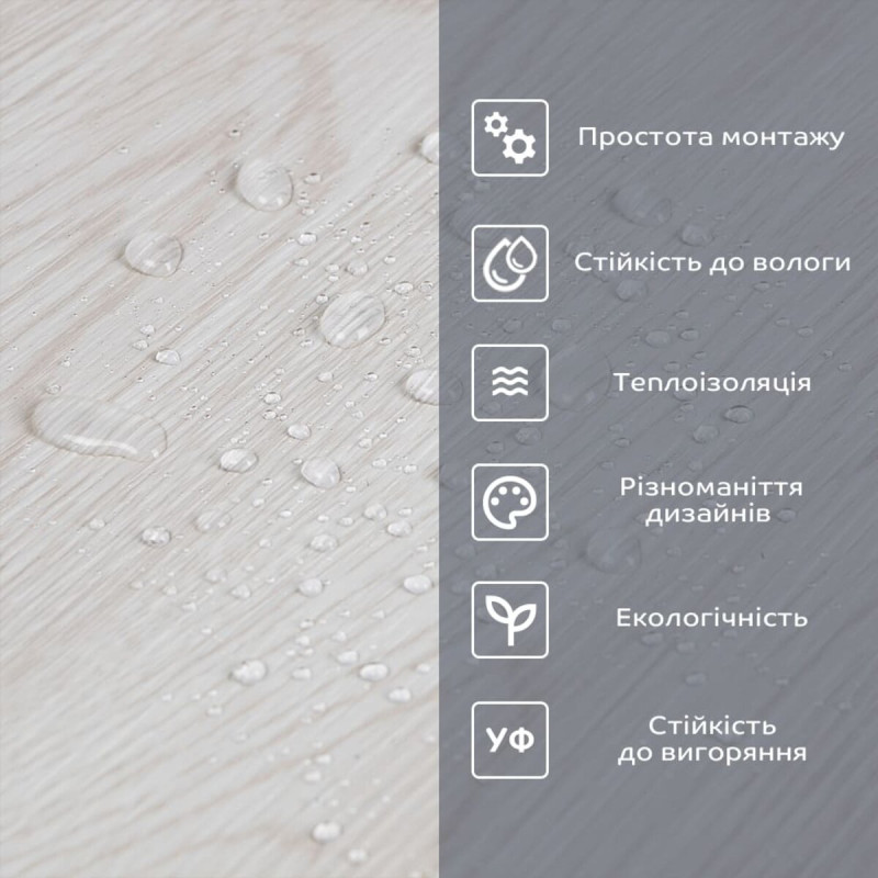 • Легкий догляд: вініл легко очищається і не вимагає спеціальних засобів для чищення.