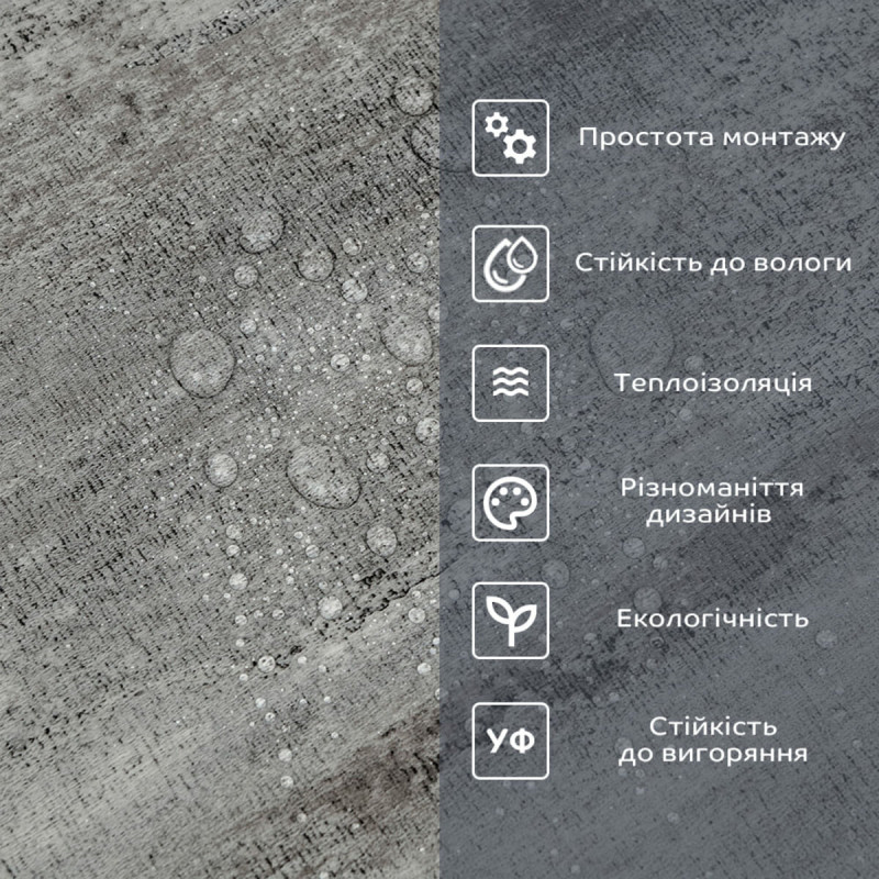 • Легкий догляд: вініл легко очищається і не вимагає спеціальних засобів для чищення.