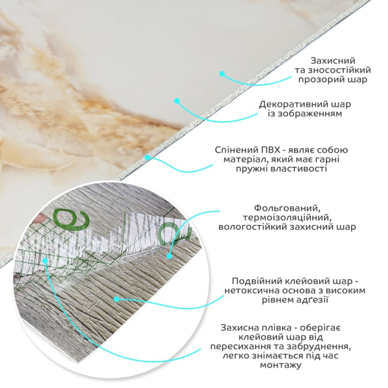 Декоративний шар: плівка з кольоровим друком високої роздільної здатності, яка повністю імітує фактуру природних матеріалів завдяки чіткому та детальному зображенню.