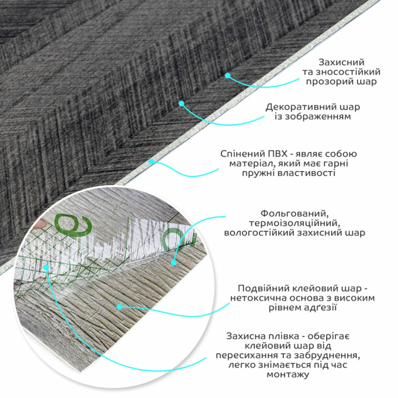 Захисна плівка – оберігає клейовий шар від пересихання та забруднення, легко знімається під час монтажу.