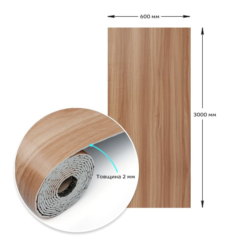 • Декоративний шар: плівка з кольоровим друком високої роздільної здатності, яка повністю імітує фактуру природних матеріалів завдяки чіткому та детальному зображенню.