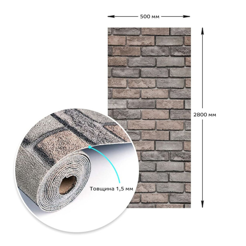 Самоклеючі шпалери 2800х500х1,5мм Коричнева катериновлавська цегла (D) SW-00001786
