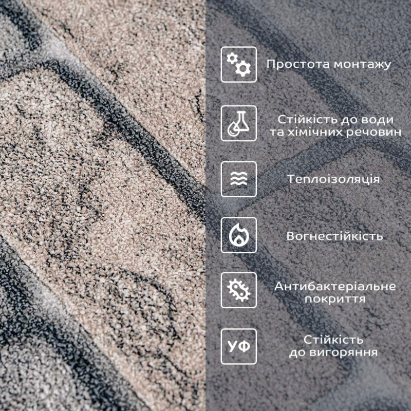 - Прінтована полімерна плівка - має антибактеріальні властивості, стійкість до вологи, хімічних речовин і температури. -захист допомагає запобігти вигоранню, зберігаючи колір насиченим, за рахунок чого шпалери довго зберігають свій первісний естетичний вигляд
