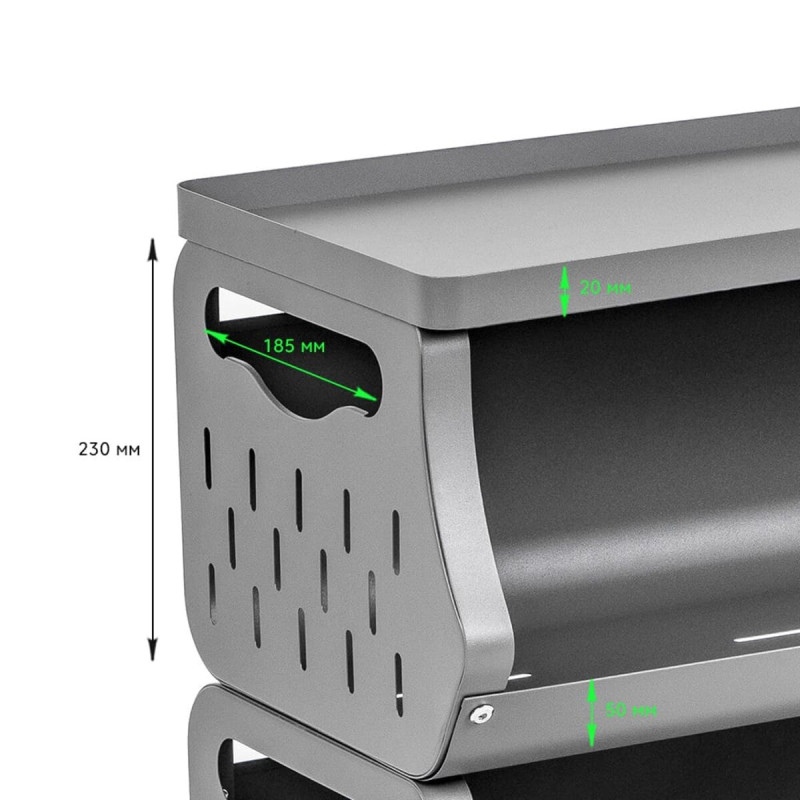 - Міцність і довговічність: стелаж виготовлений із високоякісної сталі, що робить його надійним навіть для важких предметів.