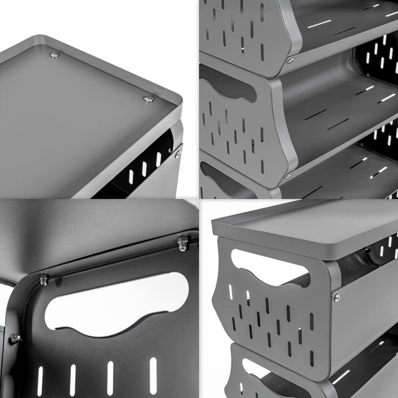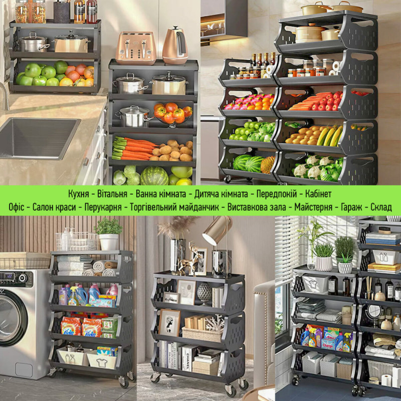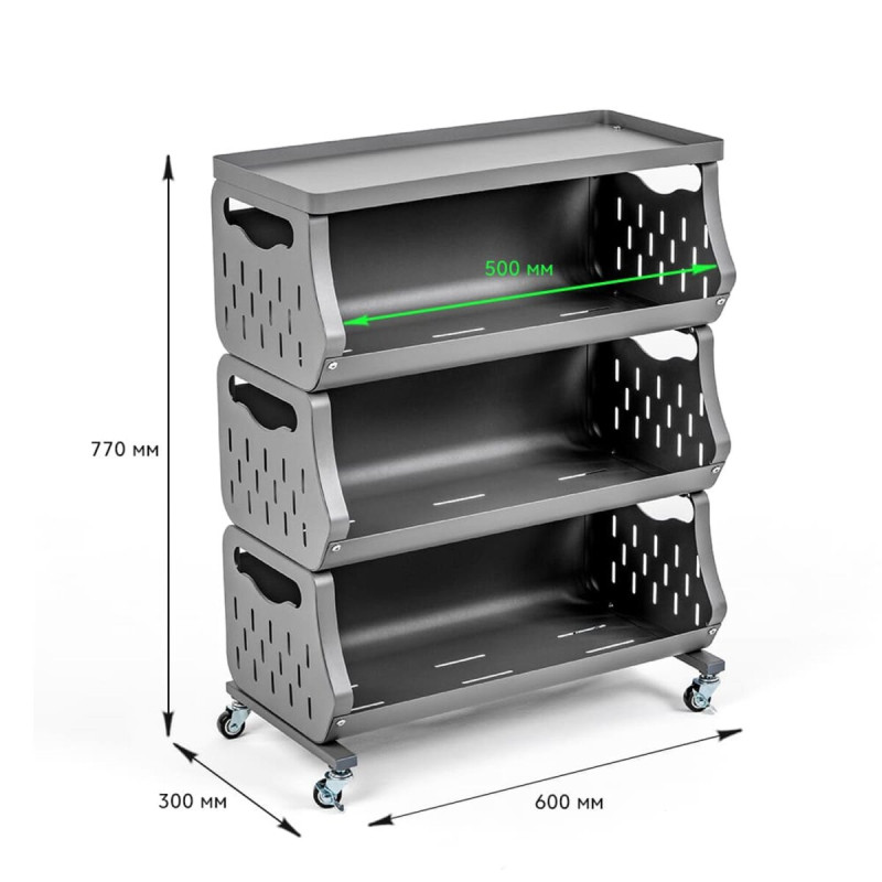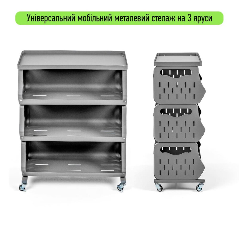 До вашої уваги стильне та функціональне рішення для організації простору у будь-якому приміщенні – універсальний стелаж для зберігання. Завдяки мобільній конструкції з колесами (які йдуть у комплекті), його легко переміщати туди, де він потрібен найбільше. Компактний дизайн із зручними полицями забезпечує ефективне зберігання речей з легким доступом до них. Перфоровані стінки полиць сприяють природній вентиляції, що ідеально підходить для зберігання продуктів або текстилю. Стелаж гармонійно доповнює домашній, офісний чи гаражний простір, створюючи порядок і комфорт.