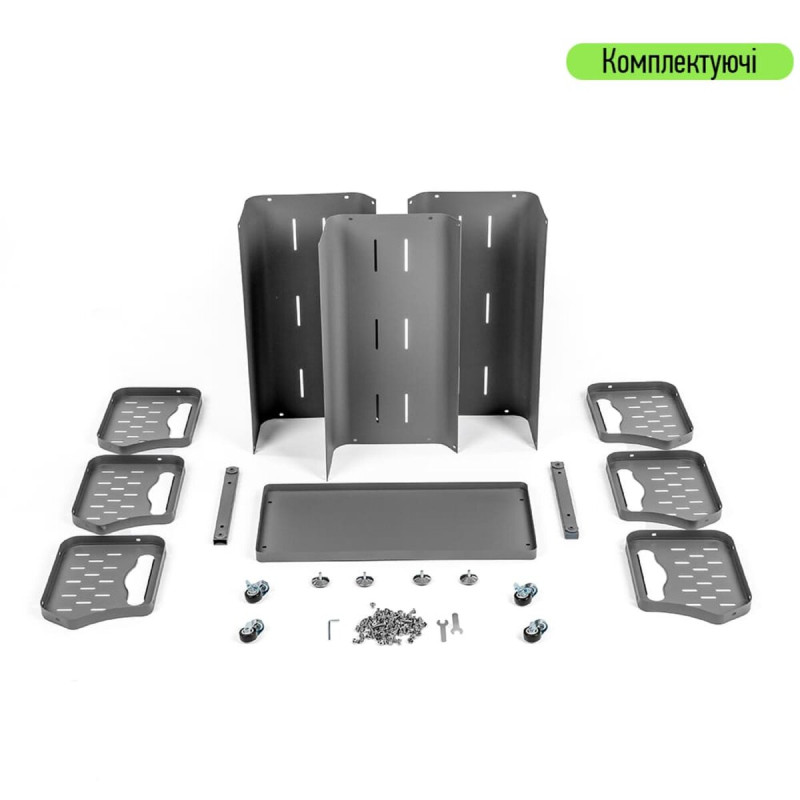 Основна конструкція виконана зі сталі, що надає виробу стійкості до механічних навантажень та забезпечує тривалий термін експлуатації. Металеві поверхні покриті порошковою фарбою, яка створює надійний захисний шар, що запобігає корозії, подряпинам та іншим пошкодженням.