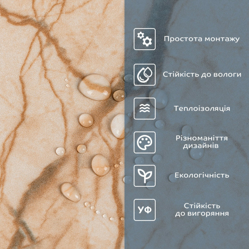 - Захисний силіконізований папір: оберігає клейовий шар від пересихання та забруднення, легко знімається під час монтажу.