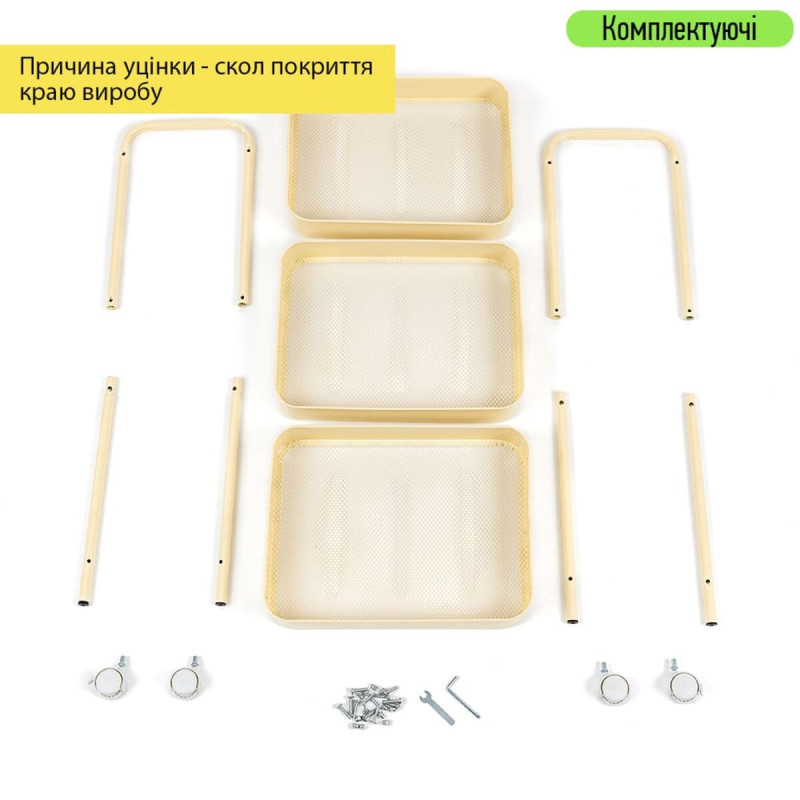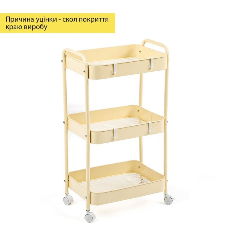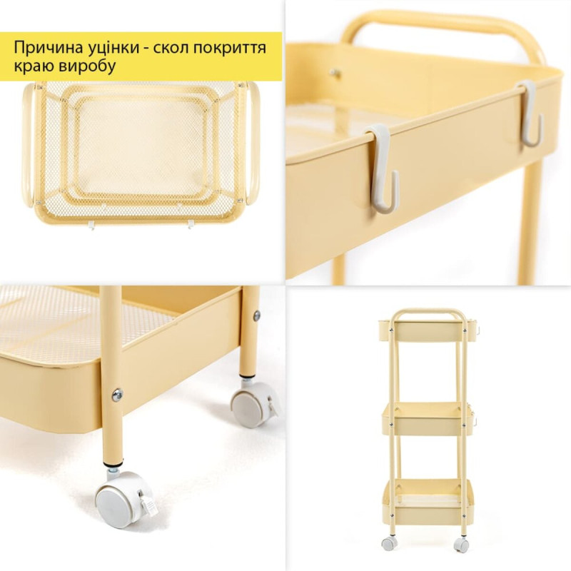Додайте елегантність та функціональність у ваш простір з нашим багатоярусним етажеркою на колесах. Виконаний у світло-жовтому кольорі, він стане яскравим акцентом у будь-якому інтер'єрі. Міцна металева конструкція та місткі полиці ідеально підходять для зберігання різних предметів. Організуйте робочий простір з комфортом та стилем – замовте наш багаторусний органайзер прямо зараз!