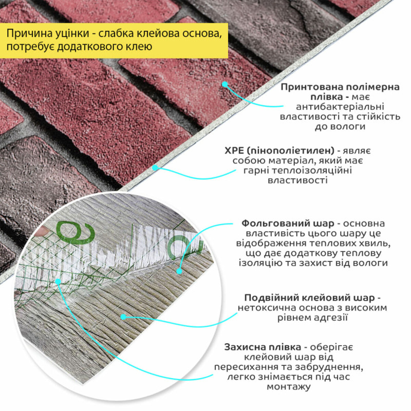 - Захисна плівка: оберігає клейовий шар від пересихання та забруднення, легко знімається під час монтажу.