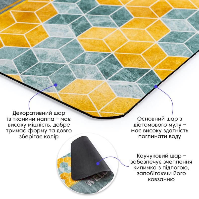 Каучуковий шар – забезпечує зчеплення килимка із підлогою, запобігаючи його ковзанню на гладких або слизьких поверхнях.