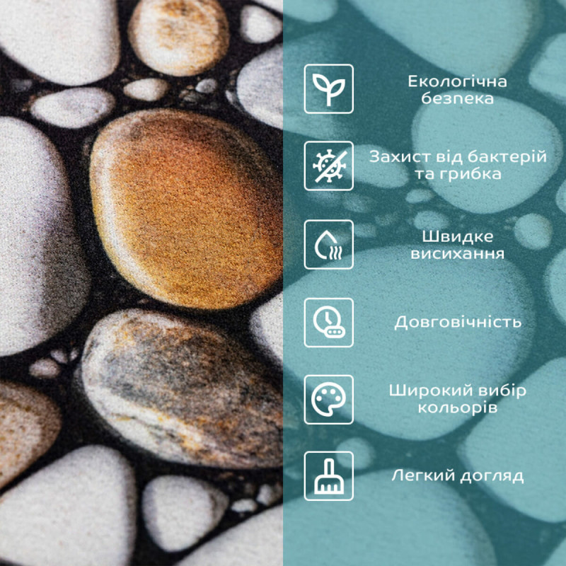 • Антиковзна основа: каучукова основа килимків забезпечує надійне зчеплення з підлогою та запобігає ковзанню, забезпечуючи безпеку використання на мокрих поверхнях.