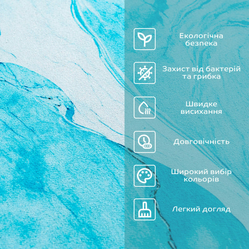 Каучуковий шар – забезпечує зчеплення килимка із підлогою, запобігаючи його ковзанню на гладких або слизьких поверхнях.