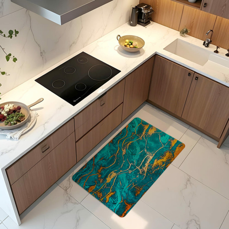 Антиковзна основа: каучукова основа килимків забезпечує надійне зчеплення з підлогою та запобігає ковзанню, забезпечуючи безпеку використання на мокрих поверхнях.