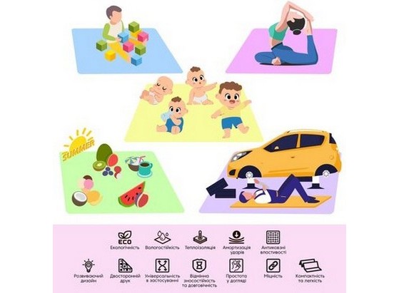 Дитячі розвивальні термокилимки з безпечного і гіпоалергенного XPE (спінений поліетилен) мають низку переваг: теплоізоляція, вологостійкість, зносостійкість, амортизація падінь, антиковзаюча поверхня і простота в догляді.