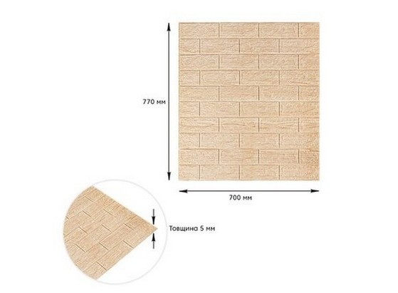 Декоративна панель під камінь «цегла» виготовлена зі спіненого поліпропілену. Це універсальний і щільний матеріал, але водночас легкий. Його термін служби понад 20 років. Самоклеючі 3D панелі з поліпропілену - це швидкий ремонт з мінімумом шуму і будівельного сміття.