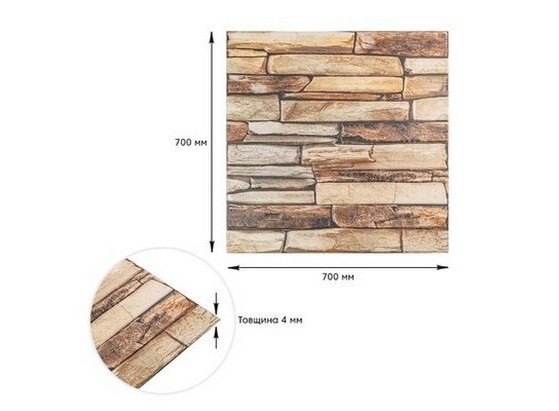 Самоклеючі 3D панелі - декоративне покриття для стін, виконане з легкого і міцного матеріалу - пористого поліпропілену (ППП). Основна особливість - рельєфний малюнок у вигляді цегли в широкому розмаїтті колірної гами і наявність клейового шару, що дає змогу встановити панелі без необхідності застосування додаткових матеріалів.